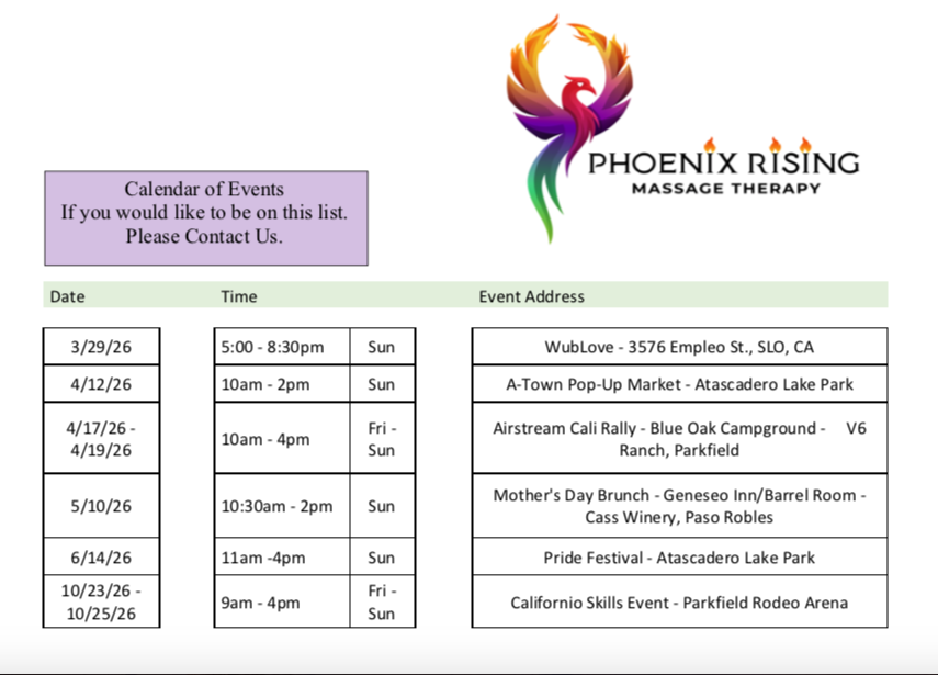 Upcoming Events Calendar: If you would like us to provide Massage/Astrology services at your upcoming event, Reach Out!